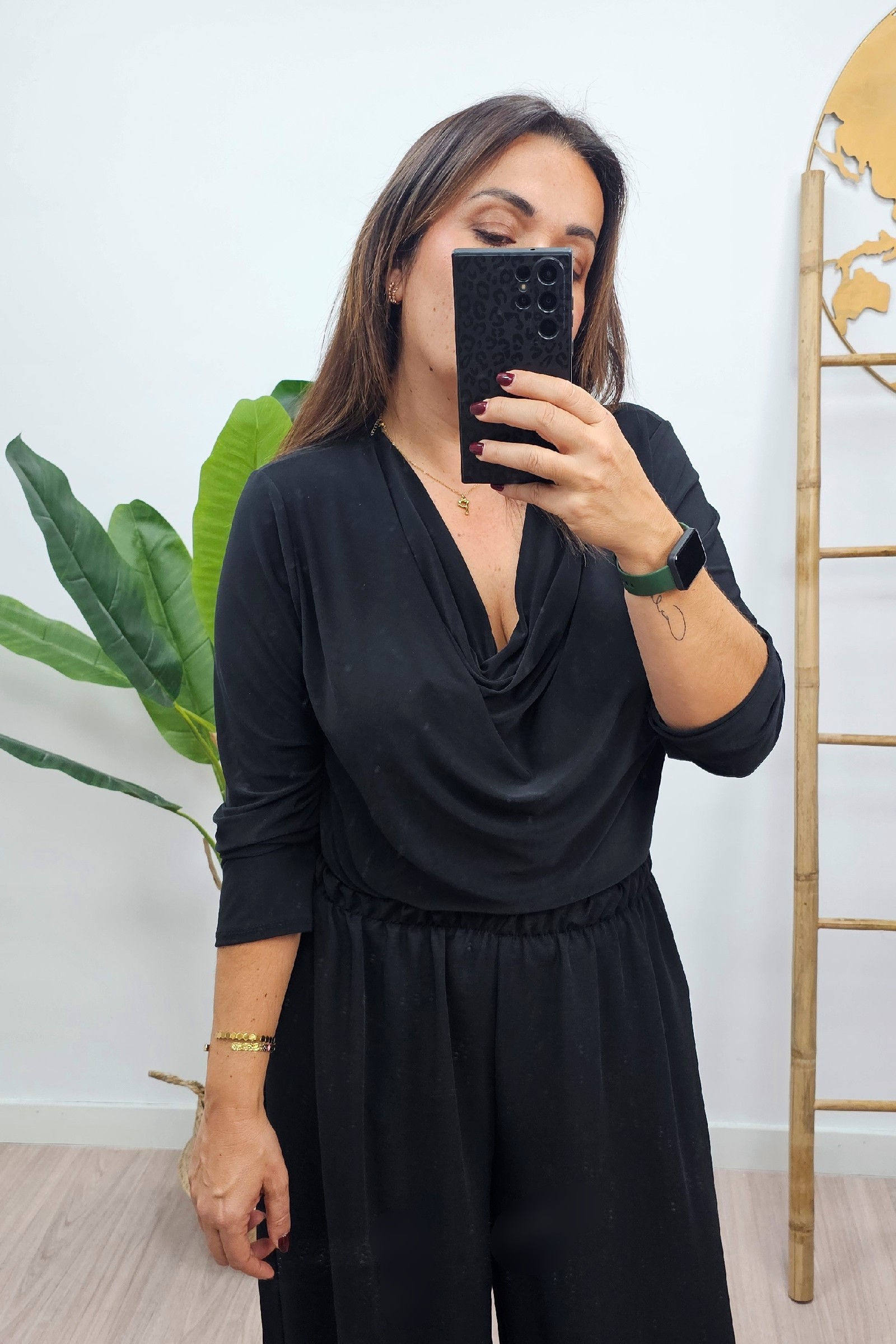 Top Cascada Negro. Blusas tallas grandes.
