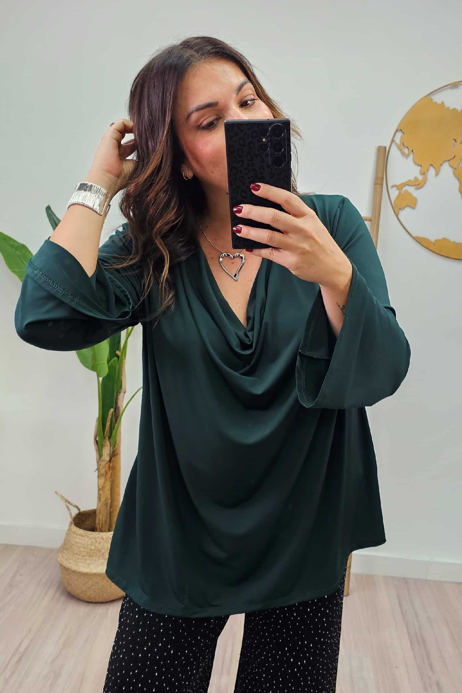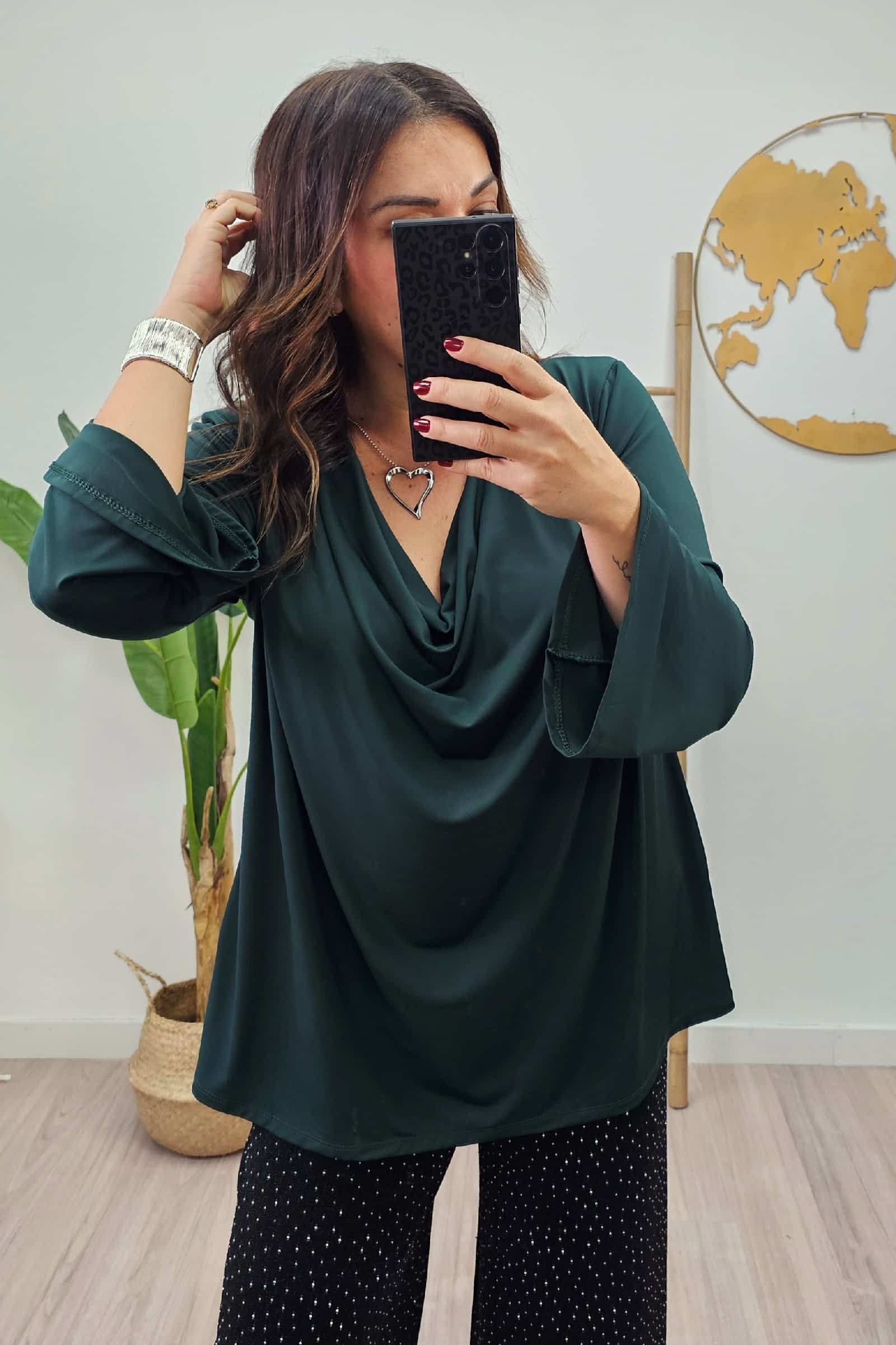 Top Cascada Plus Verde. Blusas tallas grandes.
