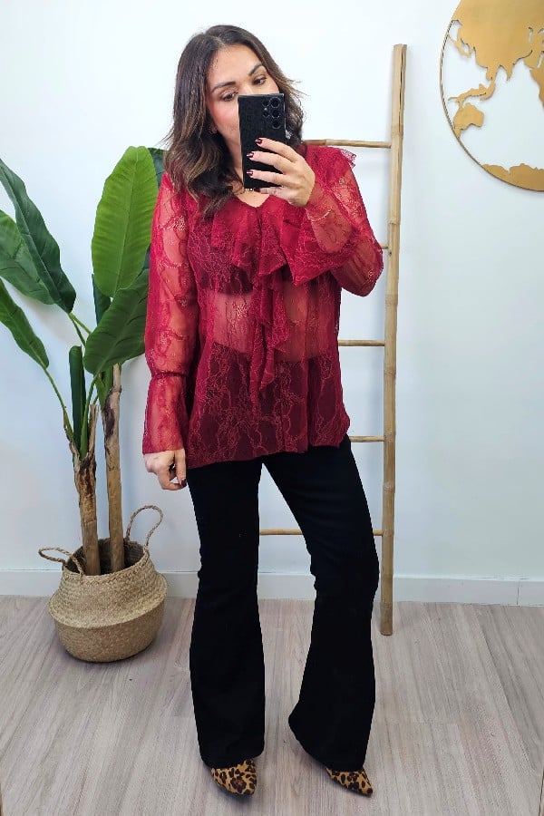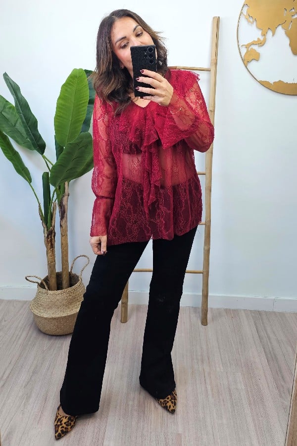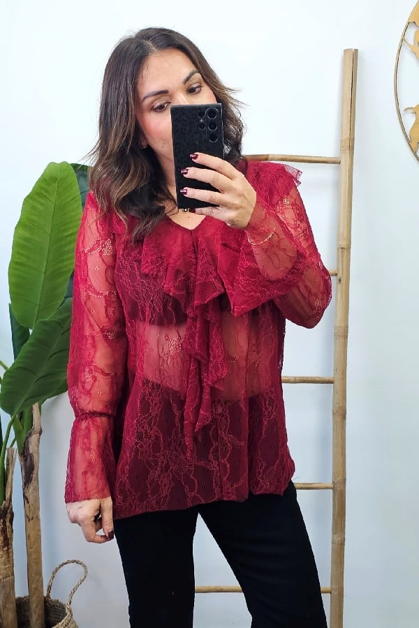 Top Encaje Burdeos. Camiseta Tallas Grandes.