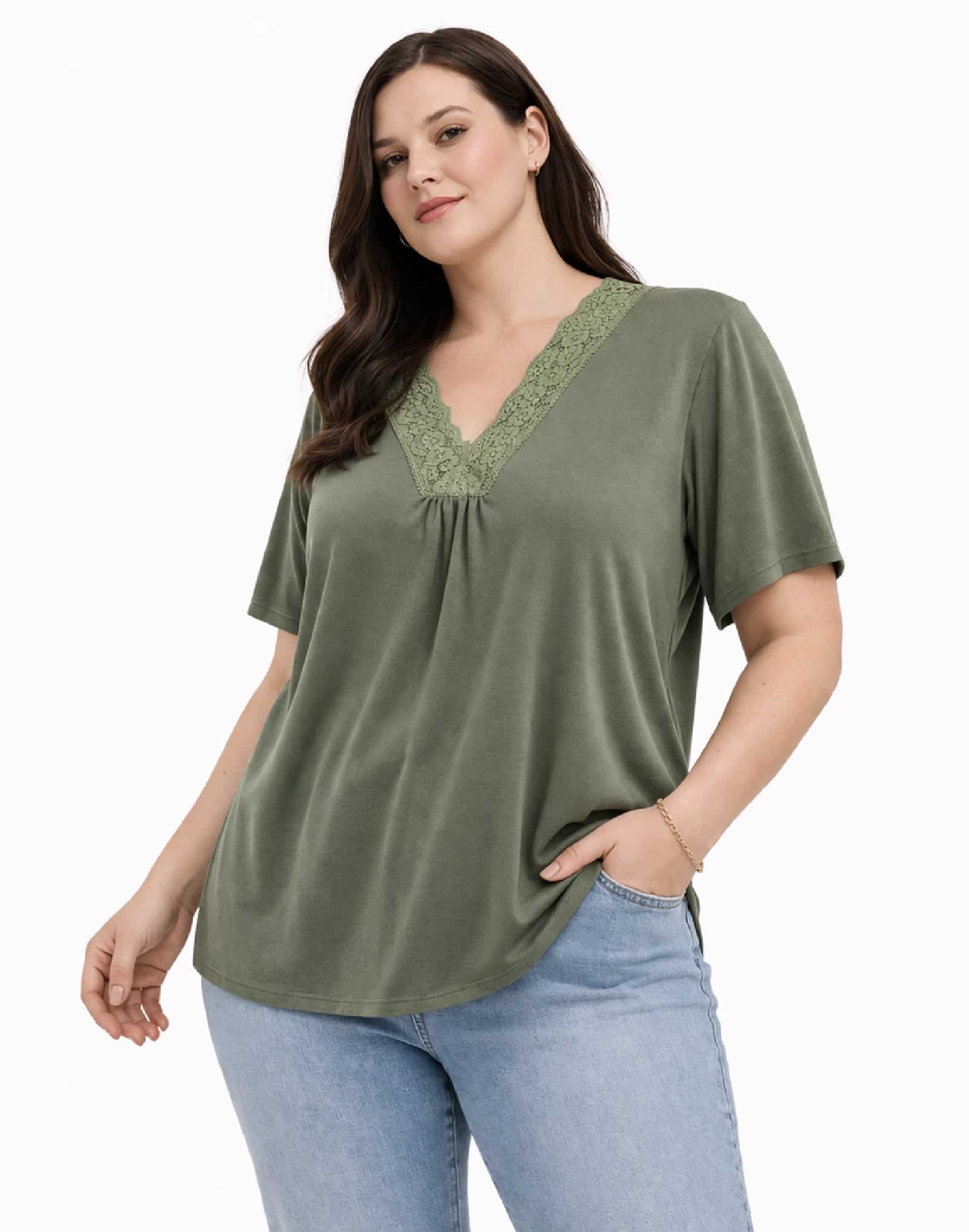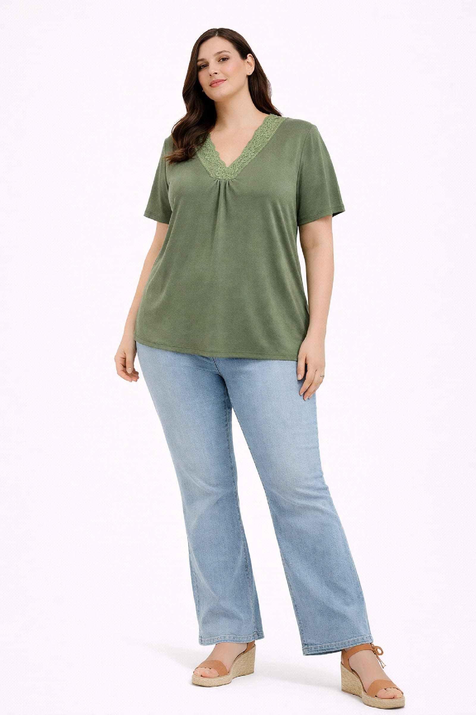 Top Encaje Punto Kaki. Camiseta Tallas Grandes.