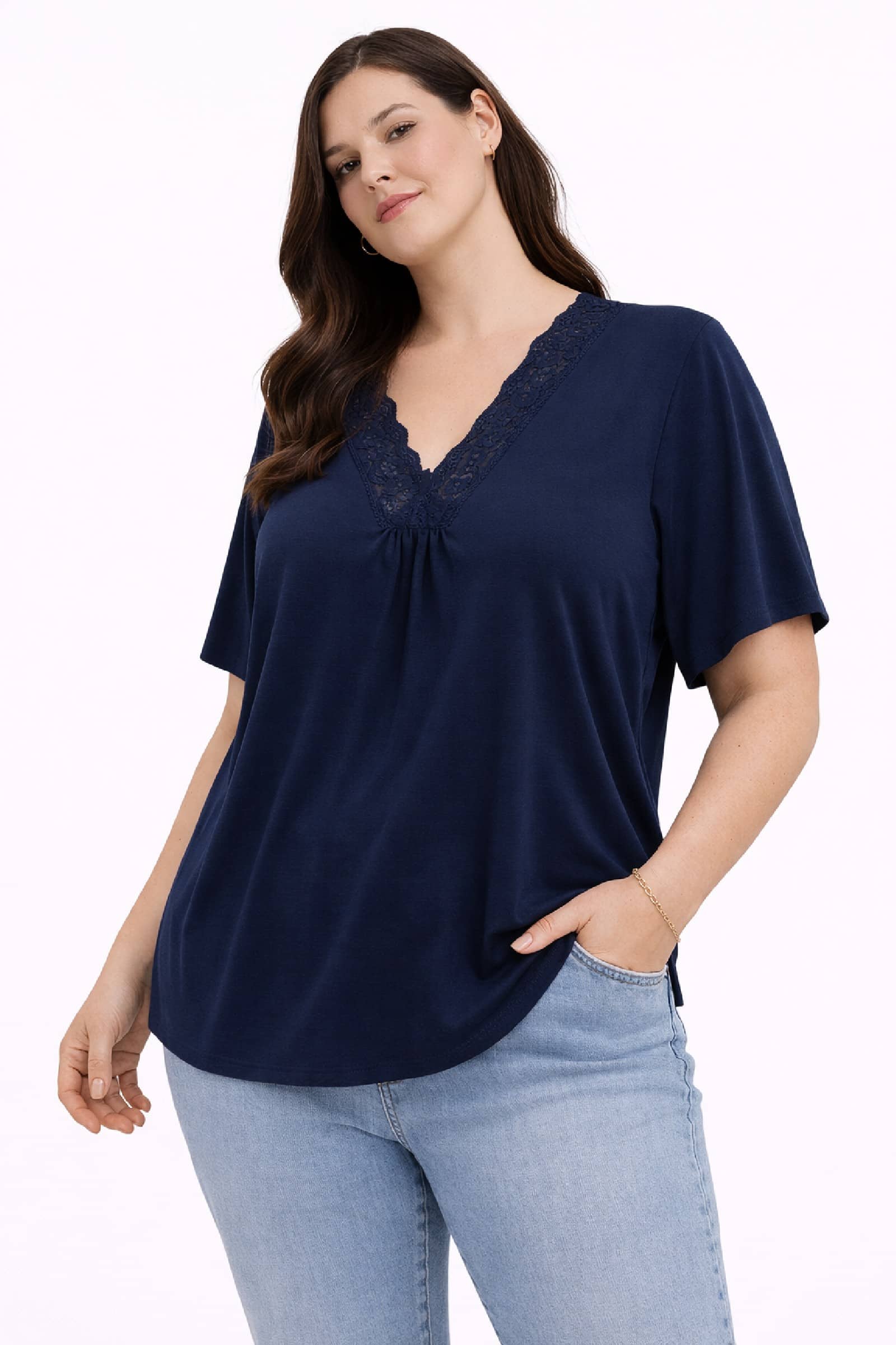 Top Encaje Punto Marino. Camiseta Tallas Grandes.