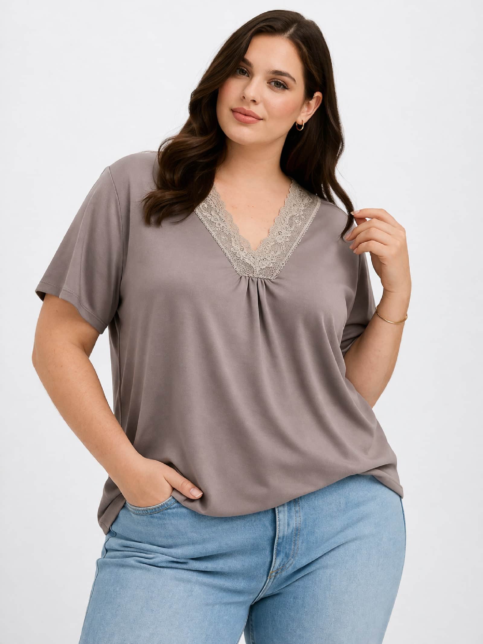 Top Encaje Punto Visón. Camiseta Tallas Grandes.