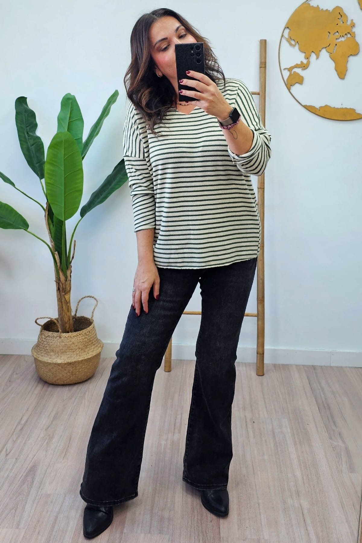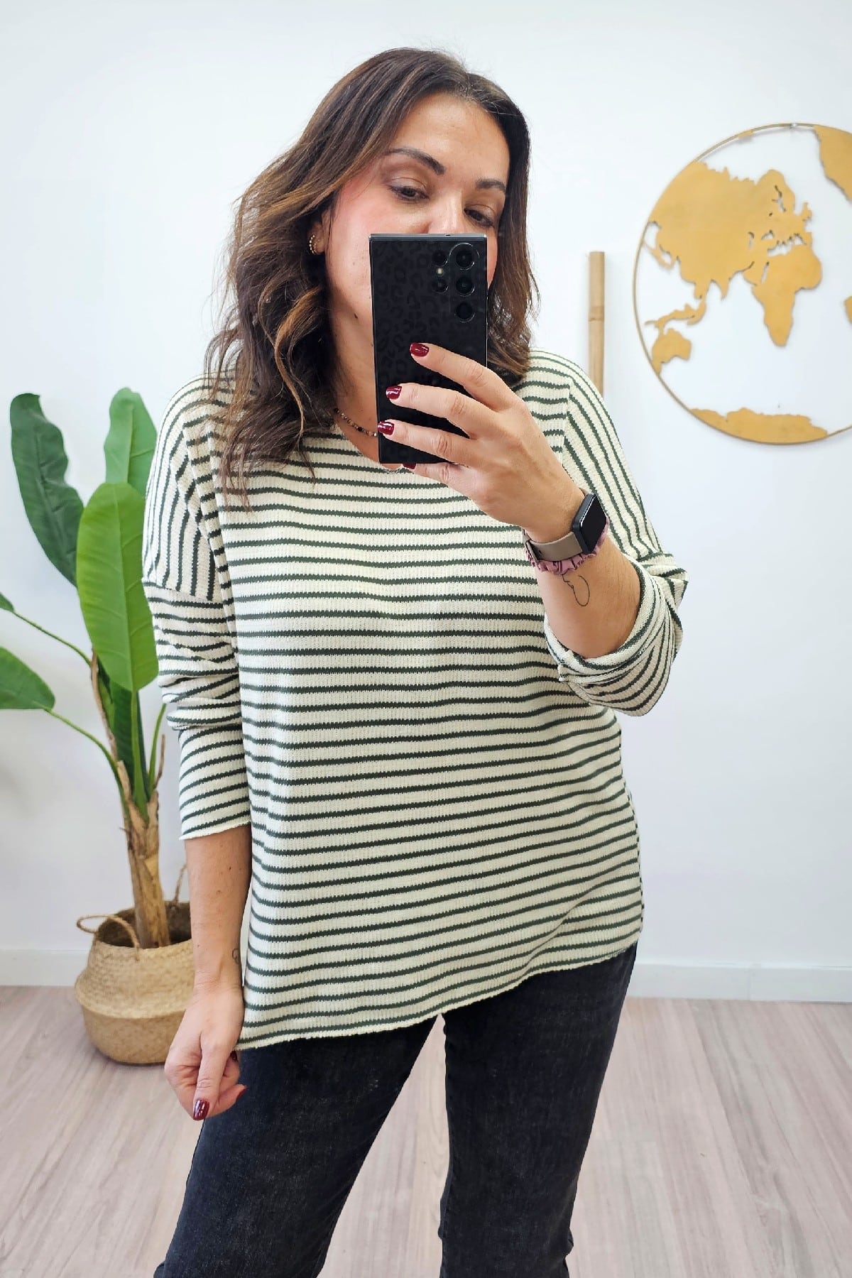 Top Rayas Gold Kaki. Tops Tallas Grandes.