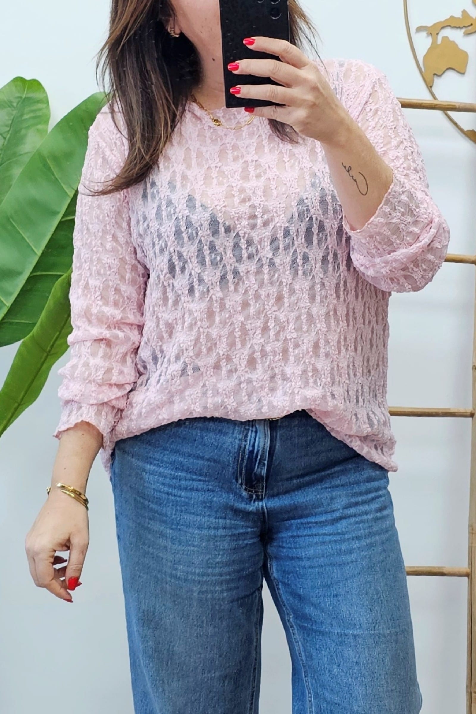 Top Spring Encaje Rosa. Tops Tallas Grandes.