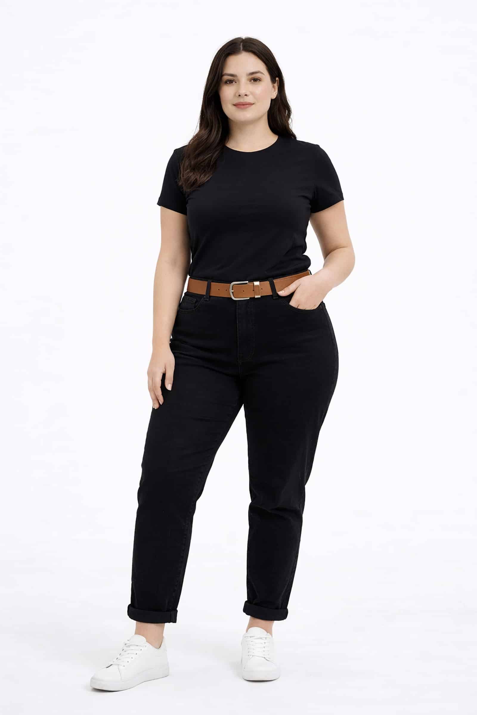Vaquero Mom Negro Cinturon . Vaqueros tallas Grandes.
