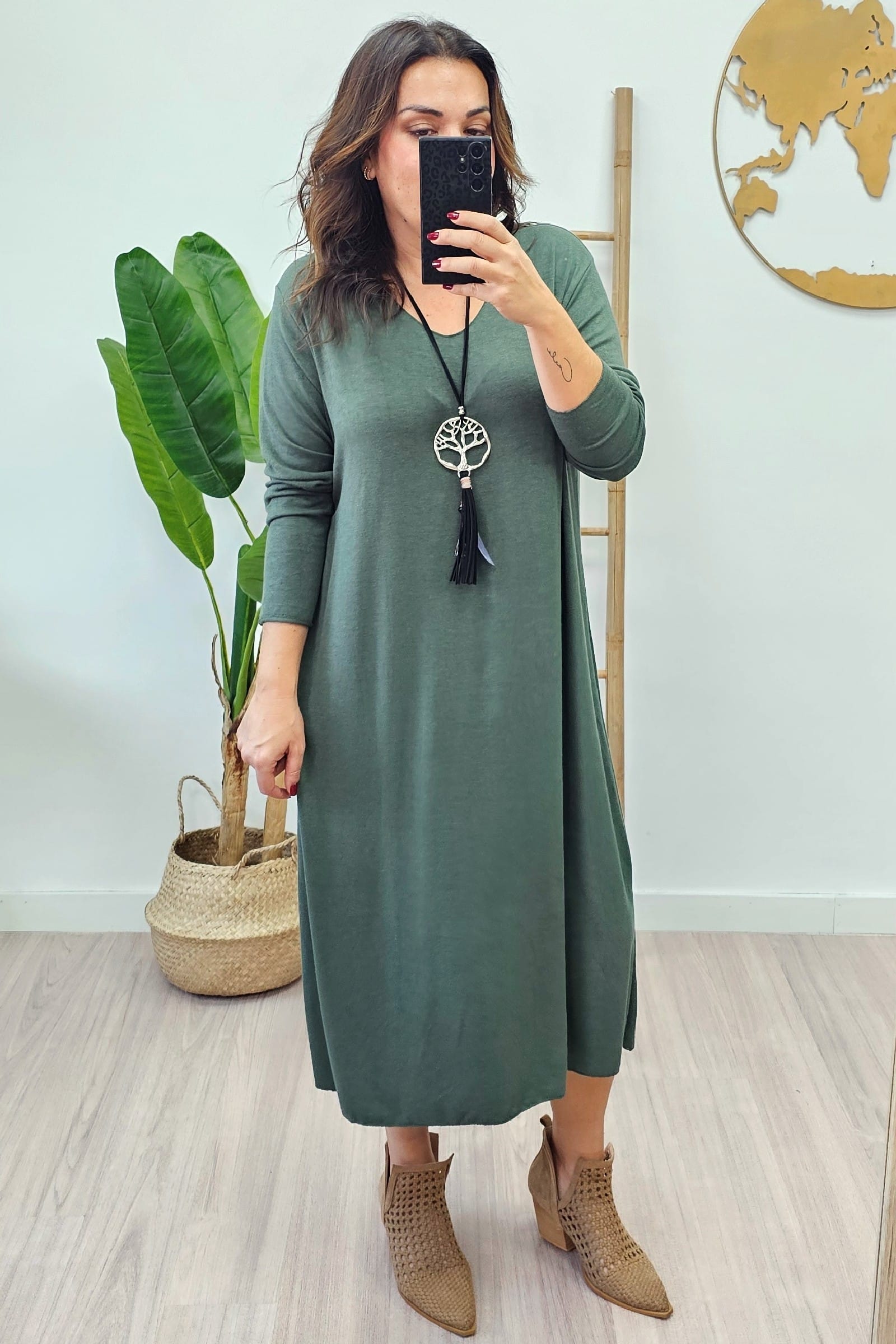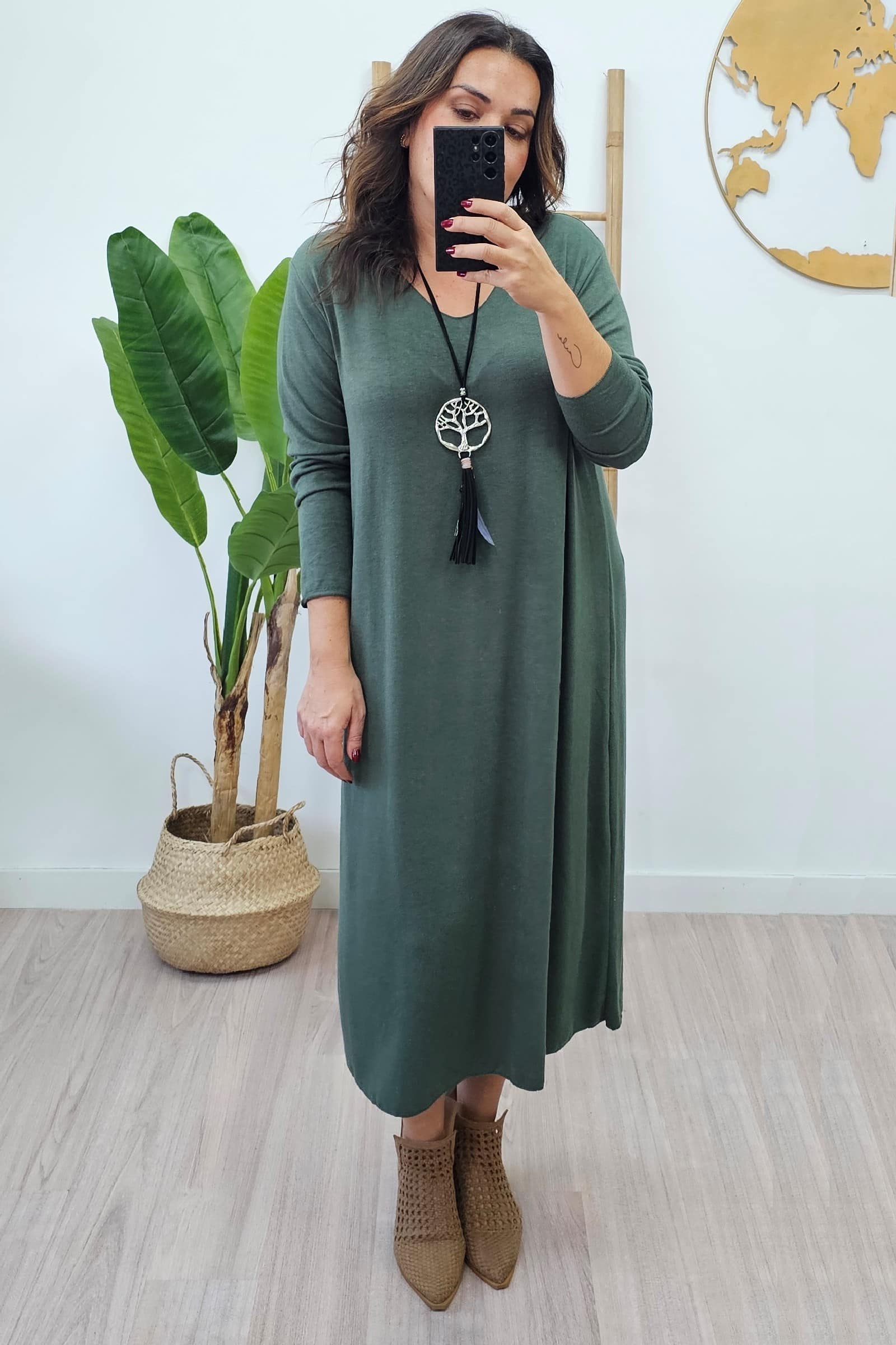 Vestido Largo Punto Kaki. Vestidos tallas grandes.