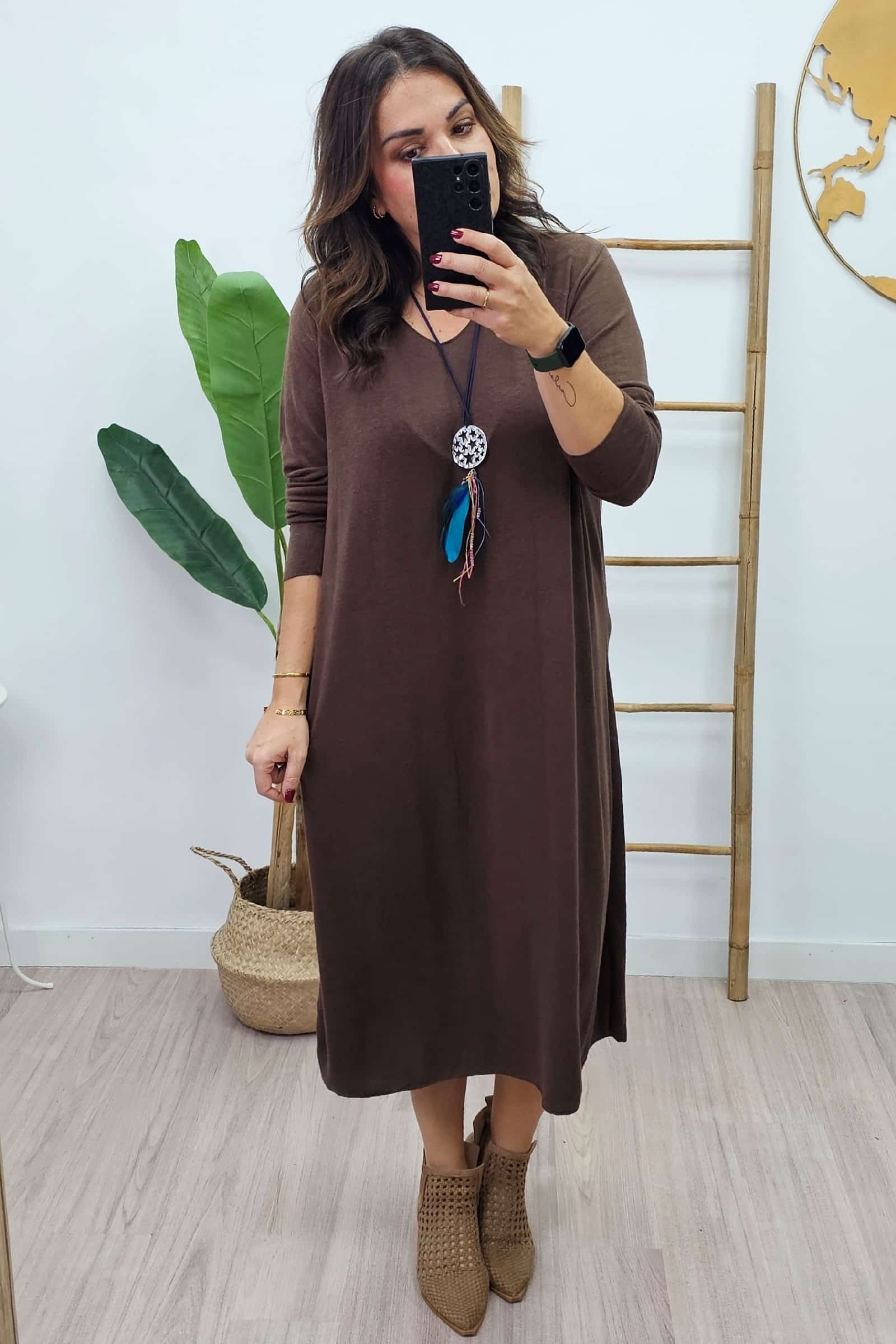 Vestido Largo Punto Marron. Vestidos tallas grandes.