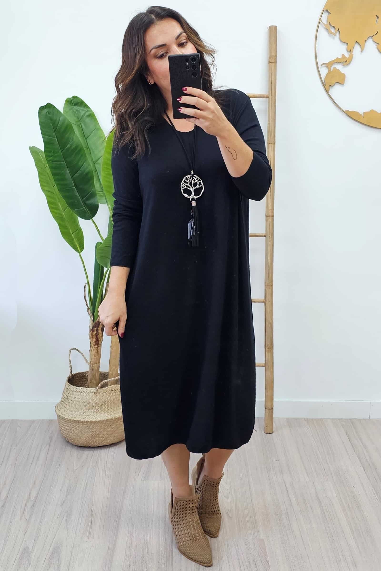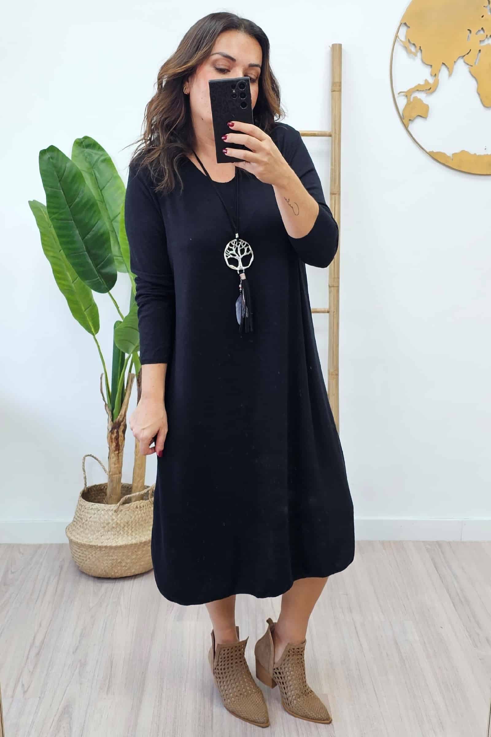 Vestido Largo Punto Negro. Vestidos tallas grandes.
