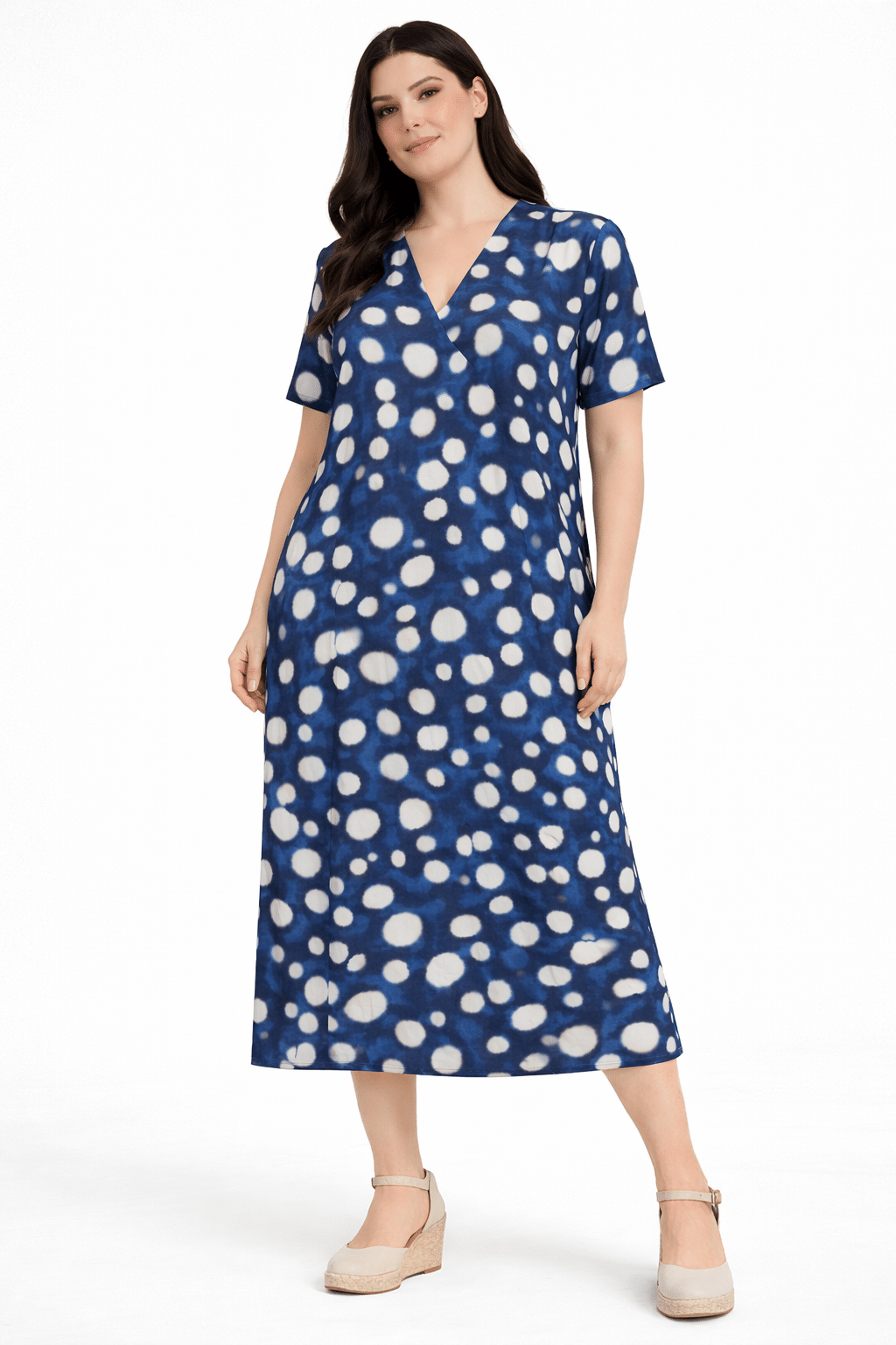 Vestido Punto Frio Azul. Vestidos tallas grandes.