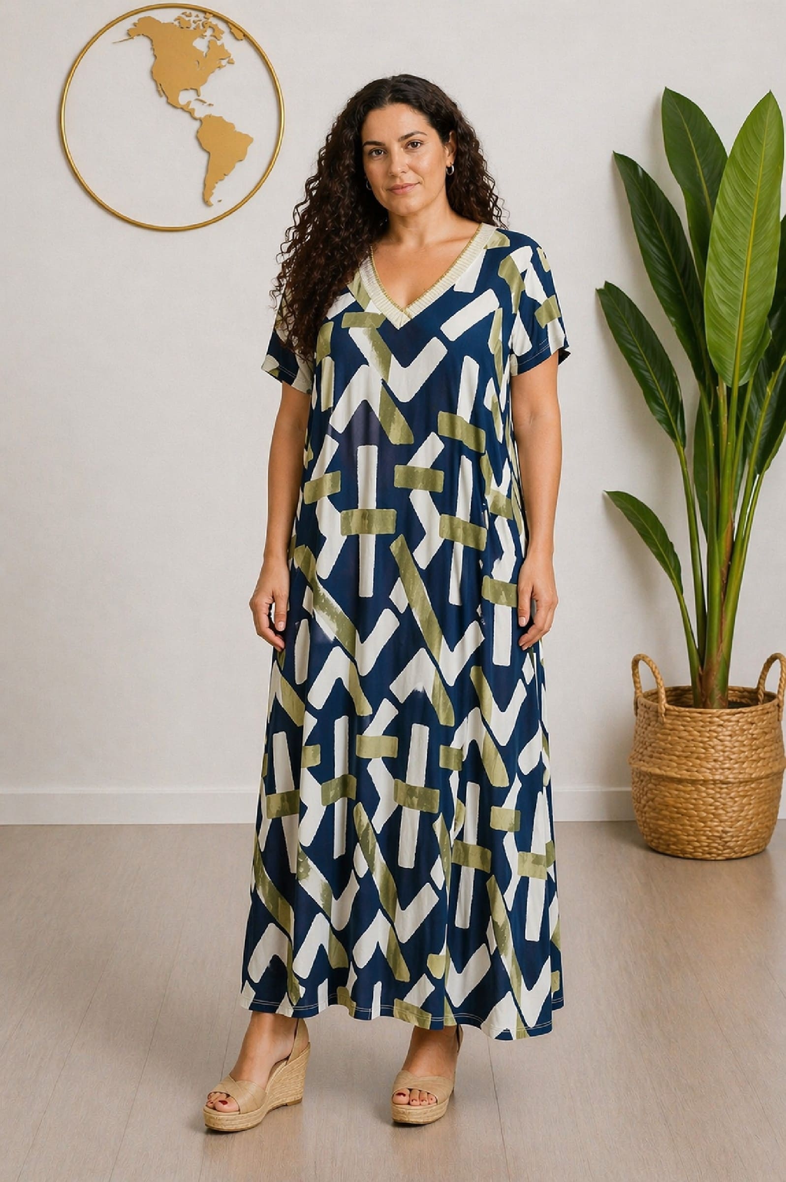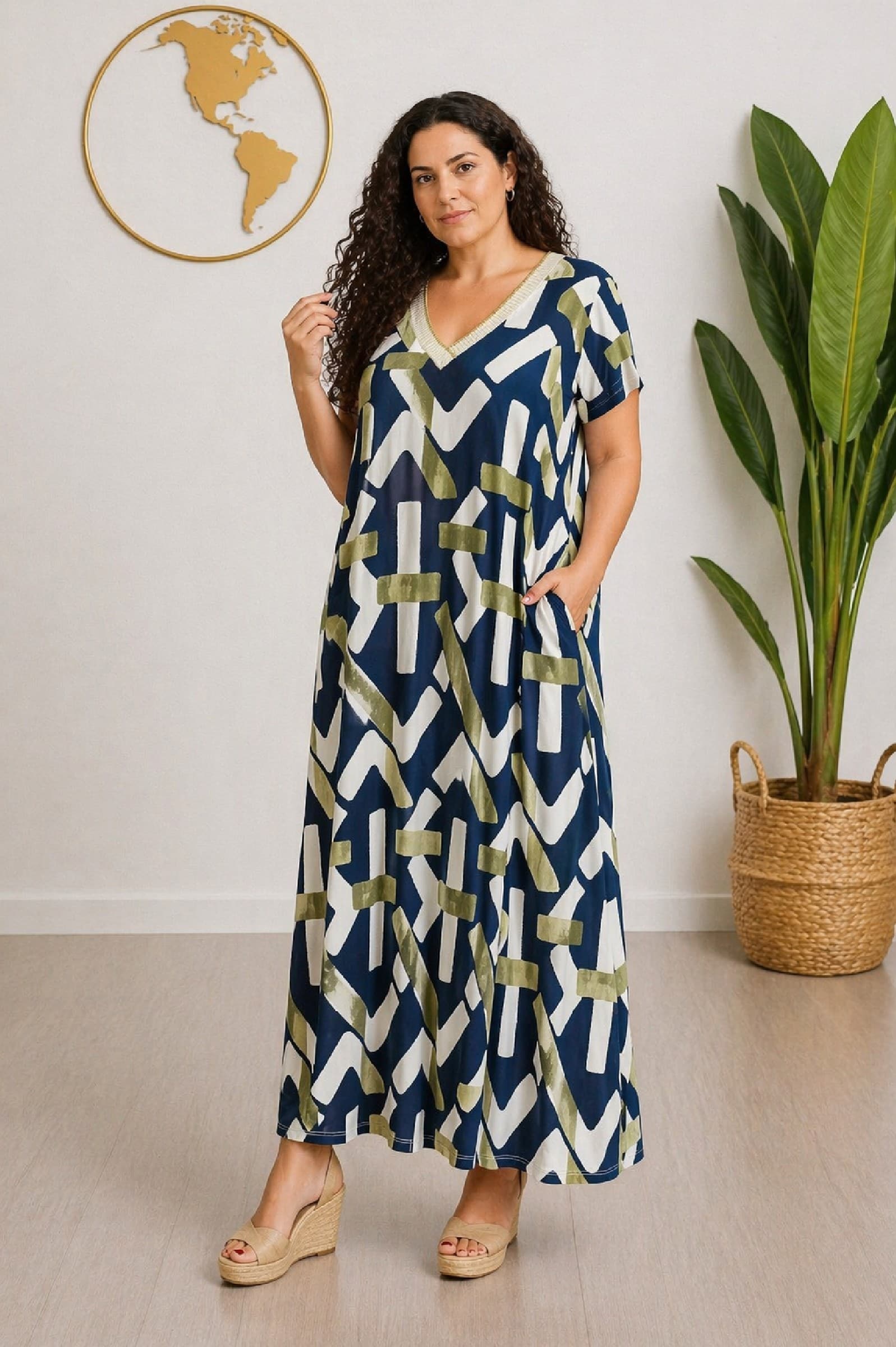 Vestido Punto Trazos Marino. Vestidos tallas grandes.