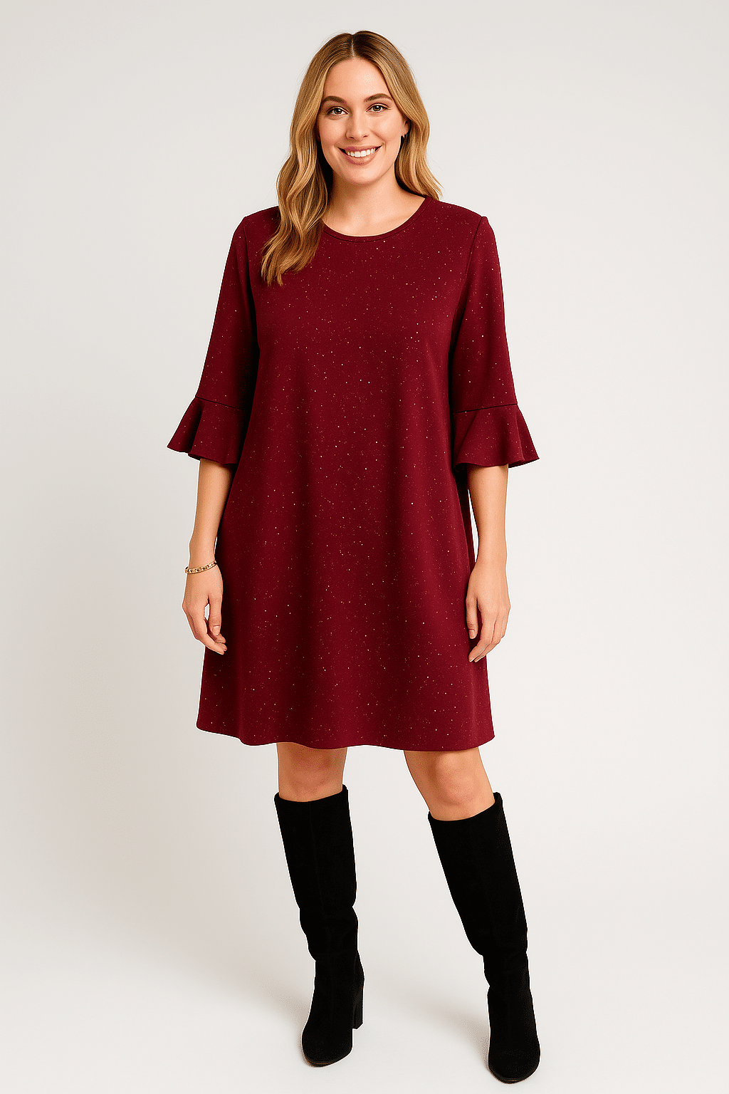 Vestido Volantes Burdeos. Vestidos tallas grandes.
