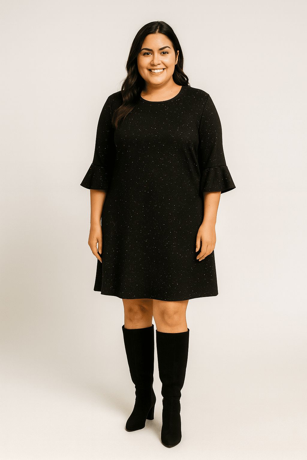 Vestido Volantes Negro. Vestidos tallas grandes.